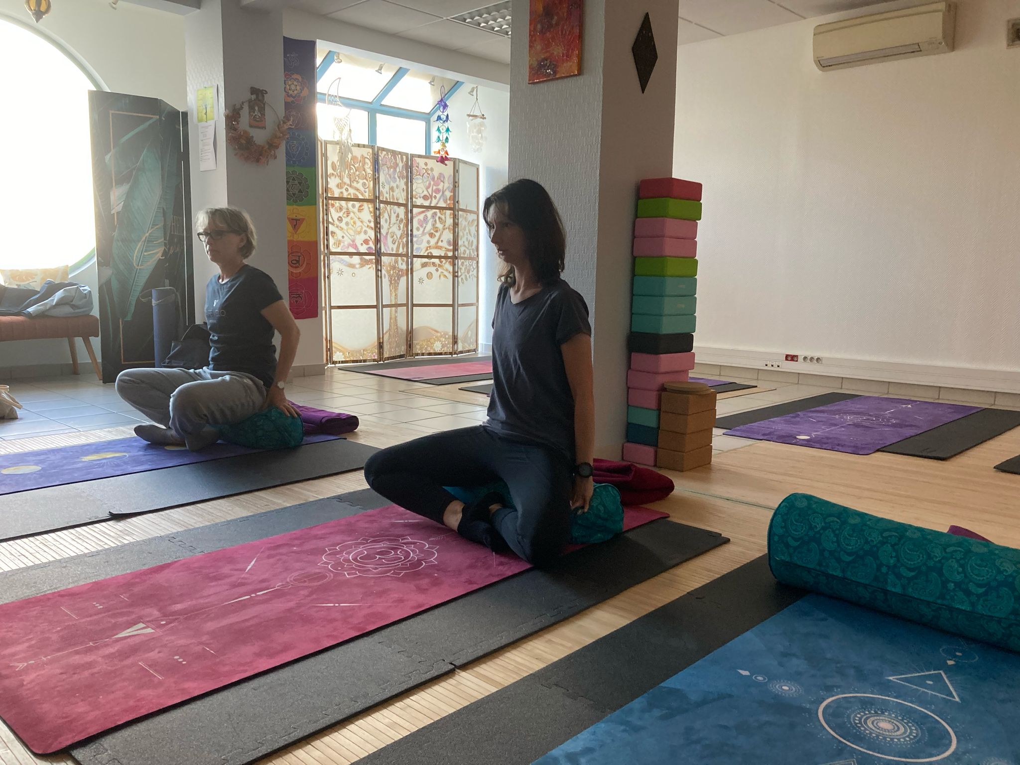 Les vendredis 9 et 16 mai 2025, une quinzaine de licenciées du club ont participé à une séance d’initiation au yoga. Ces deux soirées ont permis de découvrir des tips de yoga thérapie et le restorative yoga, des pratiques douces et régénératrices, animées par Mme Sophie Koriche, professeure de yoga au sein du Monde de Kalya.